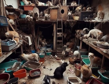 Le Syndrome de Noé provoque une accumulation excessive d’animaux entraînant une forte insalubrité (déjections, odeurs, contamination).